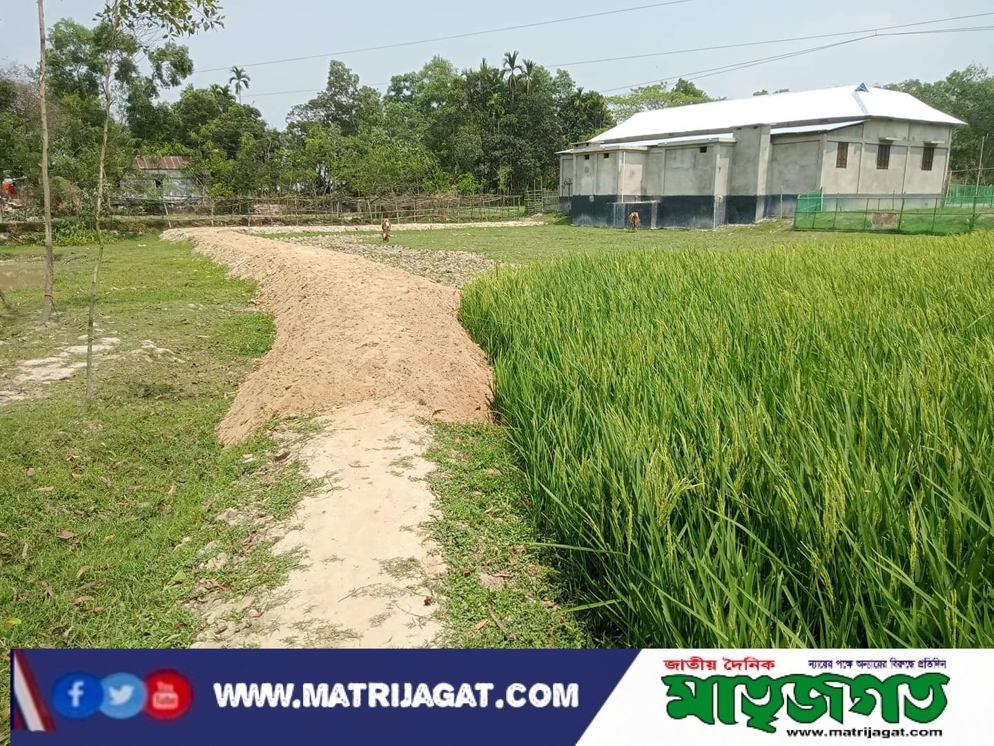 চুনারুঘাটে জোরপূর্বক রাস্তার নামে আবাদি জমি ভরাট