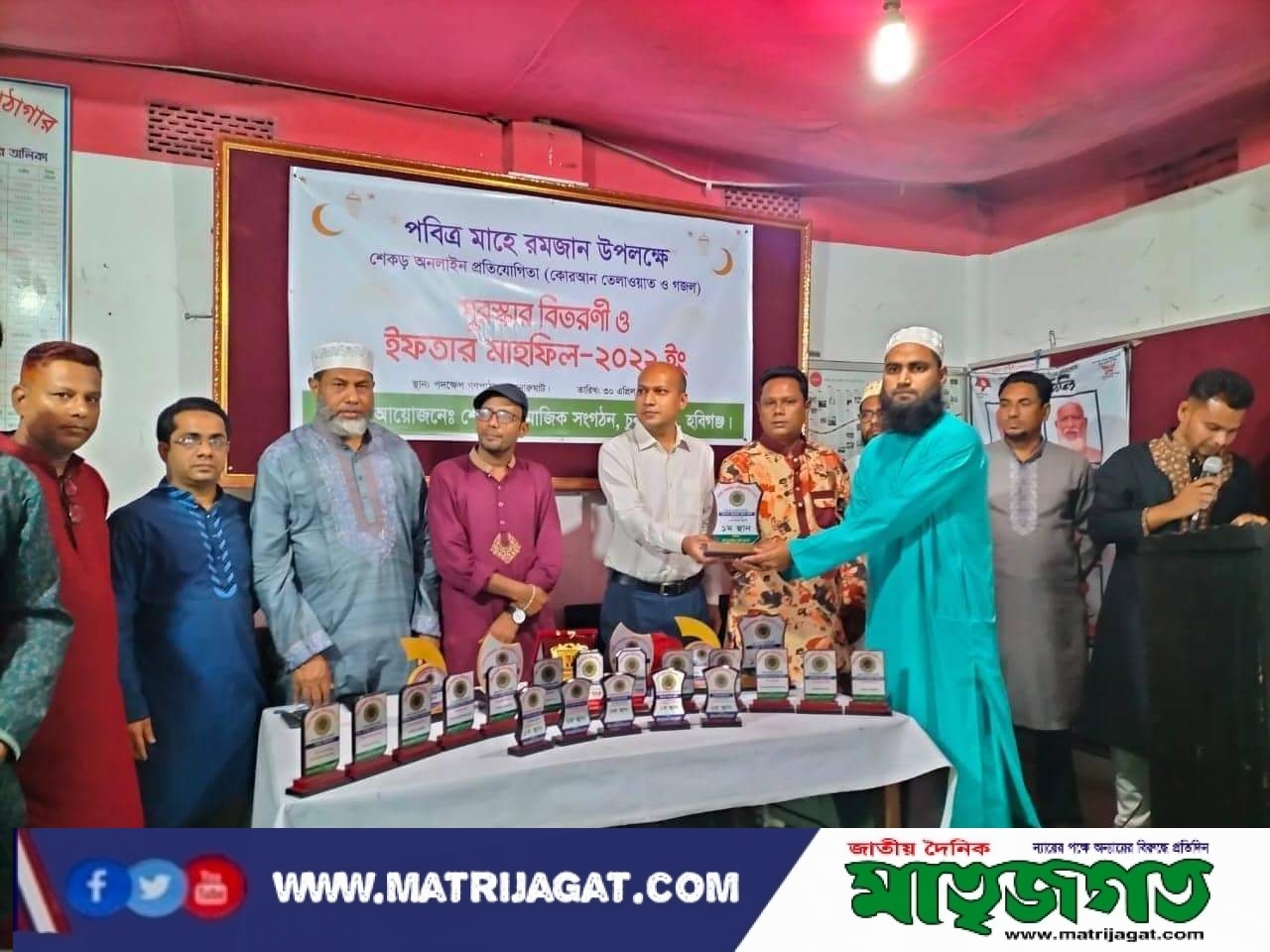 আজ ৩০ এপ্রিল ২০২২ তারিখে প্রতি বছরের ন্যায় পবিত্র মাহে রমজান উপলক্ষে শেকড় সামাজিক সংগঠন চুনারুঘাট এর উদ্যোগে পদক্ষেপ গণপাঠাগারে কোরআন তেলাওয়াত ও ইসলামী সংগীত অনলাইন প্রতিযোগিতার পুরুষ্কার বিতরণ ও আলোচনা সভা এবং ইফতার মাহফিল অনুষ্টান অনুষ্ঠিত হয়েছে ।