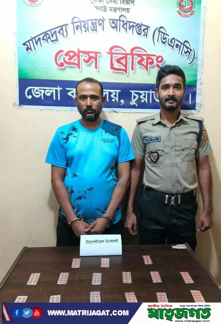 নিজস্ব প্রতিবেদক চুয়াডাঙ্গা জেলা মাদকদ্রব্য নিয়ন্ত্রণ অধিদপ্তর (ডিএনসি) কর্তৃক পরিচালিত অভিযানে দেড়শ (১৫০) পিচ ট্যাপেন্টাডল ট্যাবলেটসহ এক ব্যক্তি আটক হয়েছে। ২ই নভেম্বর ২০২৫ রবিবার ( বিকেলে চুয়াডাঙ্গা জেলার বোয়ালমারি এলাকায় অভিযান চালিয়ে তারিক আজিজ নামে ওই ব্যক্তিকে আটক করে ডিএনসি সদস্যরা। এসময় তার কাছ থেকে ট্যাপেন্টাডল জাতীয় নিষিদ্ধ ট্যাবলেট উদ্ধার করা হয়। আটক তারিক আজিজের বিরুদ্ধে মাদকদ্রব্য নিয়ন্ত্রণ আইনে মামলা দায়েরের প্রস্তুতি চলছে বলে জানিয়েছেন জেলা ডিএনসি কর্মকর্তা। উদ্ধারকৃত মালামাল: ১৫০ পিস ট্যাপেন্টাডল ট্যাবলেট আটকস্থান: বোয়ালমারি, চুয়াডাঙ্গা আটক: তারিক আজিজ ডিএনসি সূত্রে জানা গেছে, মাদকবিরোধী অভিযান চলমান থাকবে।