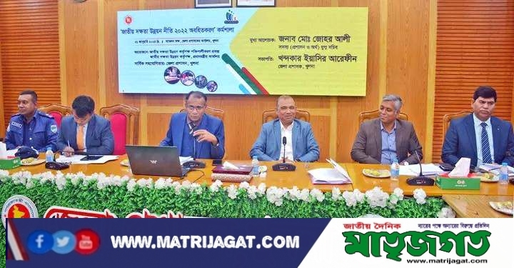আবু বকার সিদ্দীক হিরা (খুলনা ব্যুরো প্রধান): জাতীয় দক্ষতা উন্নয়ন নীতি-২০২২ বিষয়ে এক অবহিতকরণ কর্মশালা আজ (বুধবার) সকালে খুলনা জেলা প্রশাসকের সম্মেলনকক্ষে অনুষ্ঠিত হয়। জেলা প্রশাসনের সহযোগিতায় প্রধানমন্ত্রীর কার্যালয়ের জাতীয় দক্ষতা উন্নয়ন কর্তৃপক্ষ (এনএসডিএ) এই কর্মশালার আয়োজন করে। জেলা প্রশাসক খন্দকার ইয়াসির আরেফীনের সভাপতিত্বে কর্মশালায় মুখ্য আলোচক ছিলেন এনএসডিএ’র সদস্য (প্রশাসন ও অর্থ) মোঃ জোহর আলী।