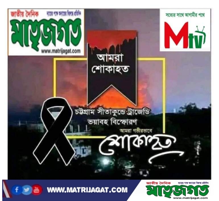 কান্নায় ভেঙে যায় বুকের পাঁজর! জাতীয় দৈনিক মাতৃ জগত পরিবার ও সম্পাদক খাঁন সেলিম রহমান এর পক্ষ থেকে গভীর শোক প্রকাশ করছি।সেই সাথে ফায়ার সার্ভিসের যে সকল যোদ্ধা অগ্নিদগ্ধদের উদ্ধার করতে গিয়ে নিজেই দগ্ধ হয়ে শহীদ হয়েছে তাদের প্রতি গভীর শ্রদ্ধা জানাই।