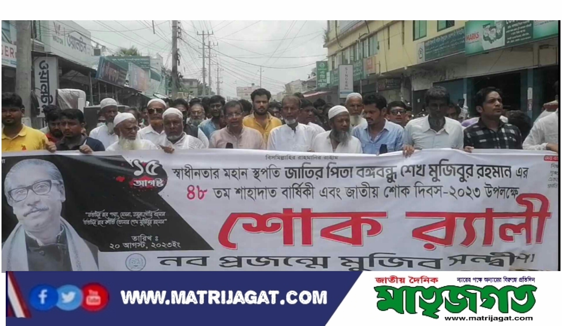 নিজস্ব প্রতিবেদকঃ-জাতির পিতা বঙ্গবন্ধু শেখ মুজিবুর রহমানের ৪৮তম শাহাদাত বার্ষিকী এবং জাতীয় শোক দিবস-২০২৩ উপলক্ষ্যে সামাজিক ও সাংস্কৃতিক সংগঠন "নব প্রজম্মে মুজিব" সন্দ্বীপ শাখার উদ্যেগে শোক র্যালী ও বঙ্গবন্ধুর প্রতিকৃতিতে পুষ্পস্তবক অর্পণ করা হয়েছে।