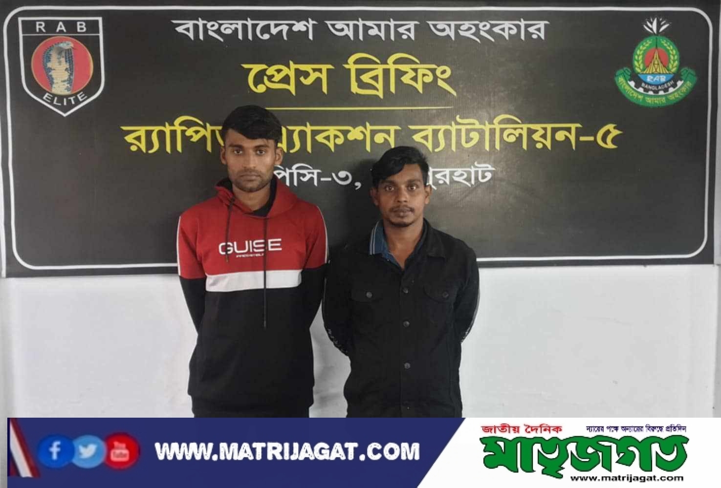 গ্রেপ্তারকৃতরা হলেন-কুমিল্লা জেলার দেবীদ্বার উপজেলার মরিচা কাদা মরিচ গ্রামের আব্দুল আলীমের ছেলে নাঈম (২৬) ও মুন্সিগঞ্জের মিরস্বর গ্রামের মোঃ জয়নাল আবেদীনের ছেলে শিপন (২৭)।