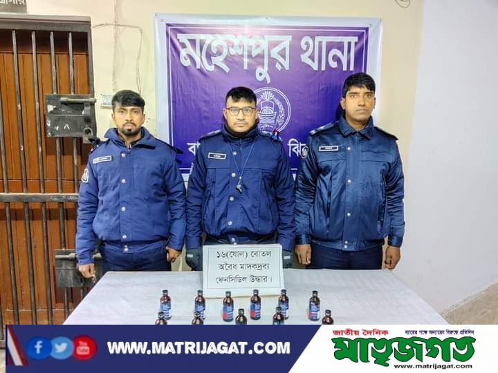 ঝিনাইদহের মহেশপুর ১৬ বোতল অবৈধ মাদকদ্রব্য ফেন্সিডিল উদ্ধার