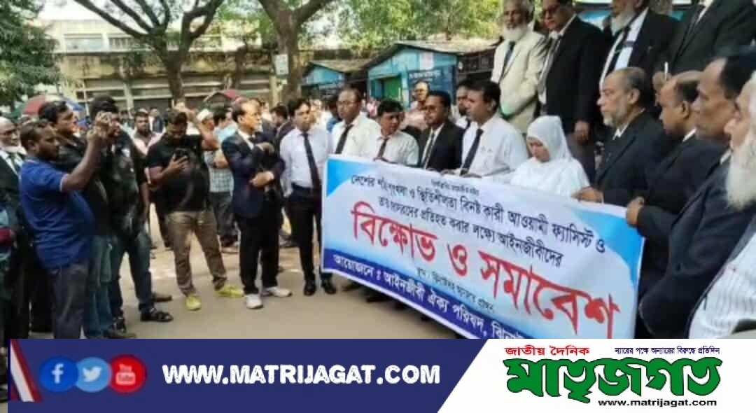 মোঃ শাকিল রেজা খুলনা বিভাগীয় ব্যুরো প্রধানঃ বুধবার (১২ নভেম্বর) দুপুরে ঝিনাইদহ আদালত প্রাঙ্গণে এ বিক্ষোভ ও সমাবেশের আয়োজন করে আইনজীবী ঐক্য পরিষদ, ঝিনাইদহ জেলা শাখা। সমাবেশে বক্তারা বলেন, দেশে আইনের শাসন ও ন্যায়বিচার আজ মারাত্মকভাবে লঙ্ঘিত হচ্ছে। বর্তমান সরকার গণতন্ত্রকে ধ্বংস করে একদলীয় শাসন কায়েম করেছে। তারা আরও বলেন, দেশের স্বাধীনতা, বিচার বিভাগের মর্যাদা ও জনগণের ভোটাধিকার রক্ষায় আইনজীবী সমাজকে ঐক্যবদ্ধভাবে আন্দোলনে নামতে হবে। বক্তারা সরকারের স্বেচ্ছাচারিতা, বিরোধী দলের নেতাকর্মীদের গ্রেপ্তার-নির্যাতন ও বিচার ব্যবস্থায় হস্তক্ষেপের তীব্র নিন্দা জানান। তারা অবিলম্বে নিরপেক্ষ তত্ত্বাবধায়ক সরকারের অধীনে জাতীয় নির্বাচন দাবি করেন। সমাবেশে জেলা আইনজীবী ঐক্য পরিষদের সভাপতি, সাধারণ সম্পাদকসহ শতাধিক আইনজীবী অংশগ্রহণ করেন। শেষে সরকারবিরোধী বিভিন্ন স্লোগানে আদালত প্রাঙ্গণ মুখরিত হয়ে ওঠে।