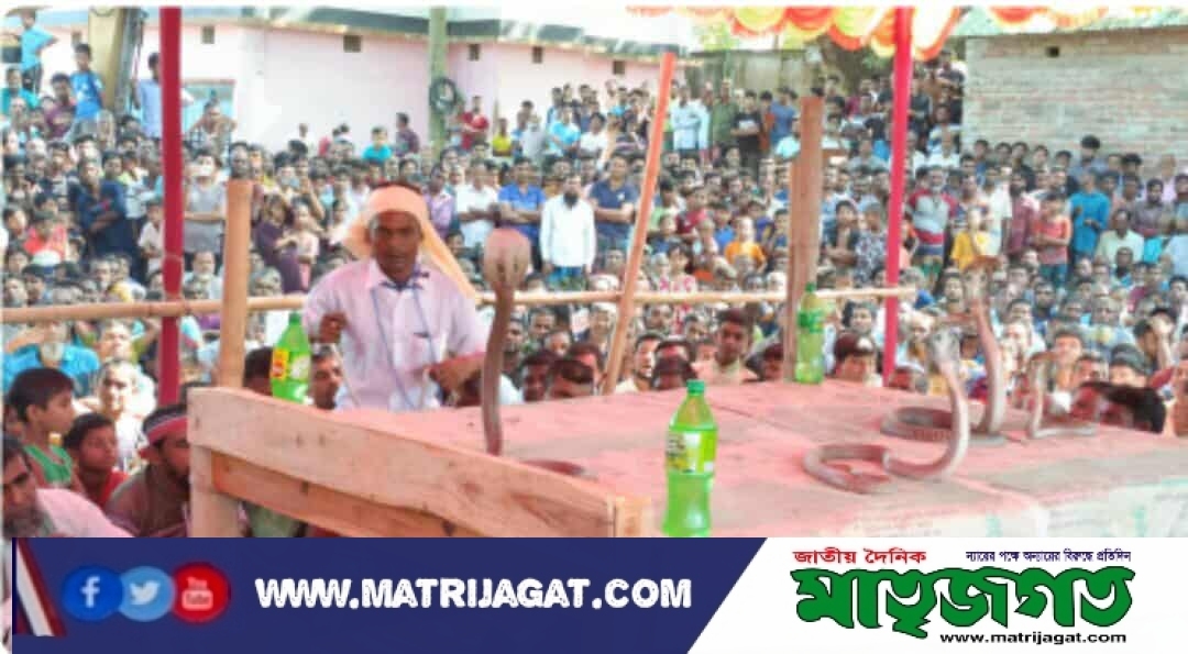 ঝিনাইদহের মহেশপুর উপজেলার বাঁশবাড়িয়া ইউনিয়নের ভৈরবা বাজারে অনুষ্ঠিত হয়েছে শতবর্ষী গ্রামীণ লোকজ ঐতিহ্যের অন্যতম বিনোদনমূলক আয়োজন বিষধর সাপ নিয়ে ‘ঝাঁপান খেলা’। বৃহস্পতিবার সকাল থেকে দিনব্যাপী এই খেলা ঘিরে পুরো ভৈরবা বাজার পরিণত হয় উৎসবমুখর জনসমুদ্রে।
