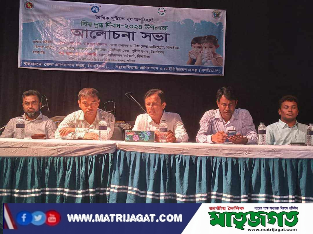ঝিনাইদহ জেলা প্রতিনিধি- শারমিন আরা: “বৈশ্বিক পুষ্টিতে দুধ অপরিহার্য” এই শ্লোগানে ঝিনাইদহে বিশ্ব দুগ্ধ দিবস পালিত হয়েছে।