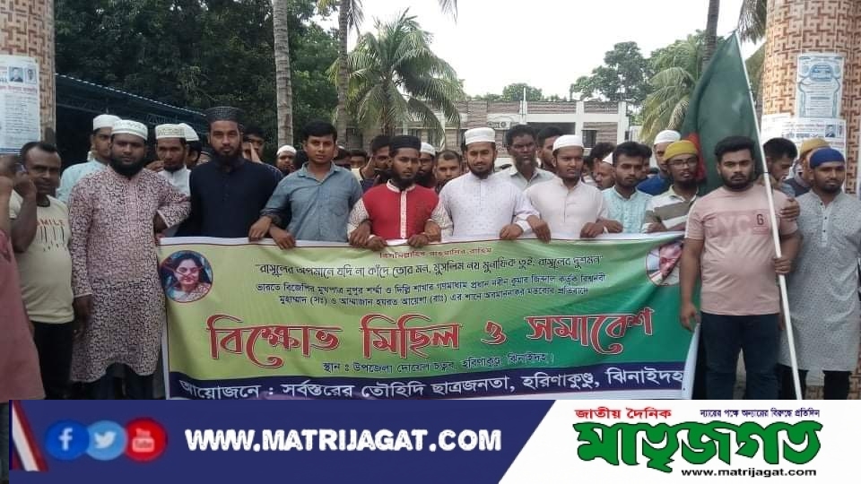 ঝিনাইদহে মহানবী হযরত মোহাম্মদ (সঃ) নিয়ে কটুক্তির প্রতিবাদে মানববন্ধন