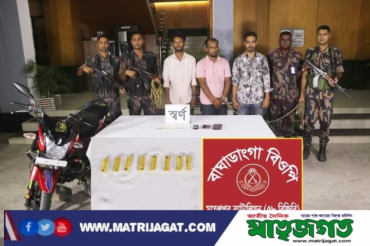 ঝিনাইদহে মহেশপুর সীমান্ত থেকে ৮টি টুকরো স্বর্ণের বারসহ ৩ জনকে আটক করেছে ৫৮ বিজিবি