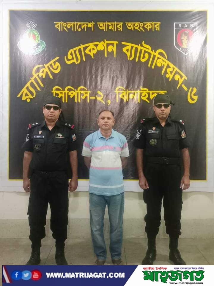 ঝিনাইদহে মাদক মামলার ০৫ বছরের সাজাপ্রাপ্ত ও অর্থদন্ডপ্রাপ্ত দীর্ঘদিনের পলাতক আসামী গ্রেফতার