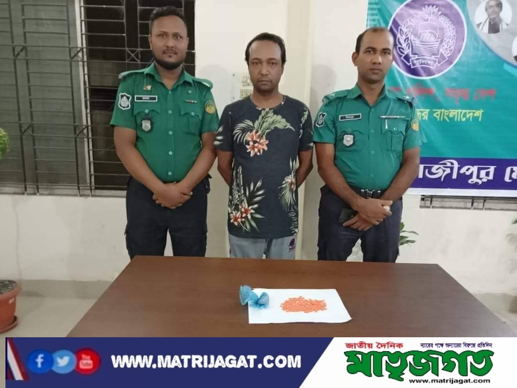 গাজীপুর টংগী পশ্চিম থানাধীন মুদাফা এলাকার খলিল মার্কেট এর পাশে মা এন্টারপ্রাইজ এর সামনে রাস্তার উপর থেকে মাদক কেনাবেচার সময়