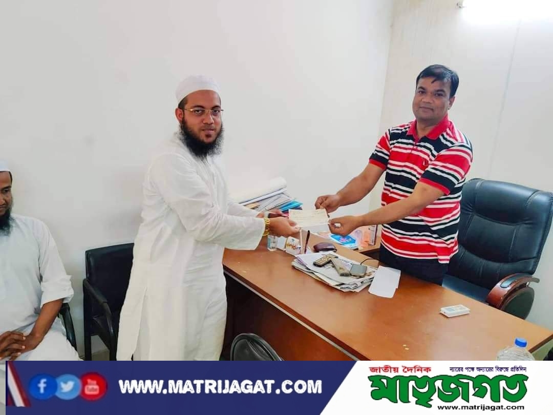 প্রতিষ্ঠানটির সহকারী প্রধান শিক্ষক এর হাতে তুলে দেন কাউন্সিল নূরুল ইসলাম নূরু।