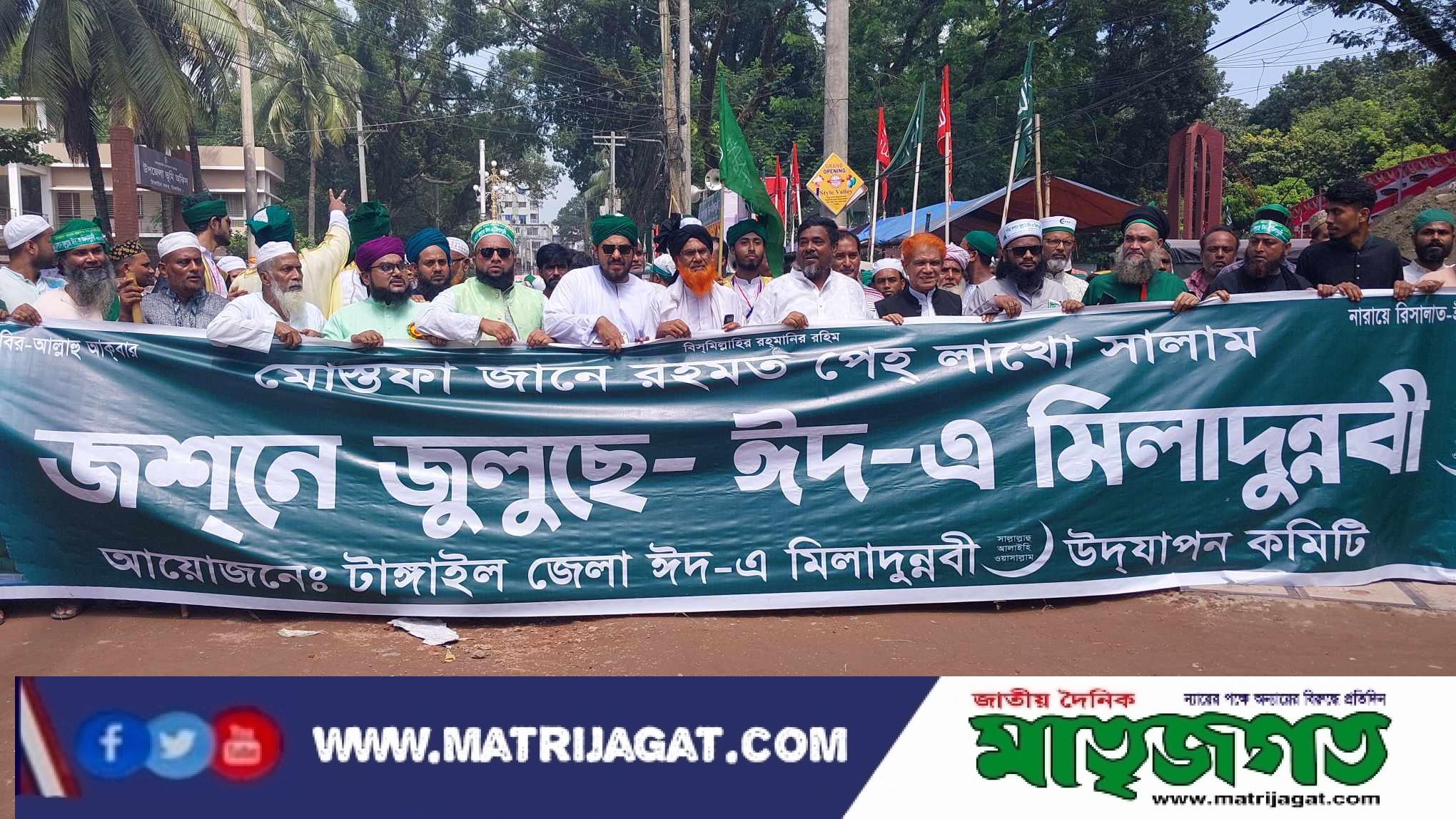 আলাউদ্দিন লিটু স্টাফ রিপোর্টারঃ টাঙ্গাইলে পবিত্র মিলাদুন্নবী সাল্লাল্লাহ আলায়হি ওয়াসাল্লাম ও জশনে জুলুছ অনুষ্ঠিত হয়েছে। বৃহস্পতিবার (২৯ সেপ্টেম্বর) সকালে শহীদ স্মৃতি পৌর উদ্যানে জেলা ঈদ-এ মিলাদুন্নবী উদযাপন কমিটির উদ্যোগে এ আয়োজন করা হয়।