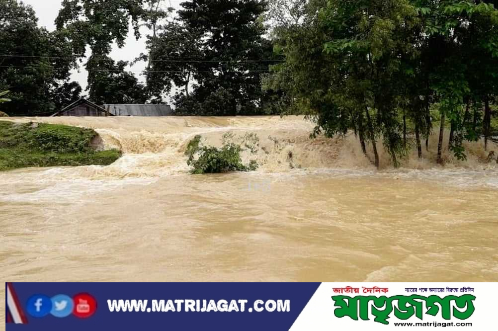 টানা ভারী বর্ষণ ও ভারত থেকে নেমে আসা উজানের ঢলে মনু নদের বাঁধ ভেঙে লোকালয়ে পানি, সড়ক যোগাযোগ বিচ্ছিন্ন