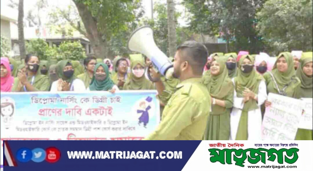 সোমবার (২৮ এপ্রিল) সকাল সাড়ে ১১টার সময় ঘণ্টা ব্যাপী চলা বিক্ষোভ ও মানববন্ধনে ডিপ্লোমা নার্সিং কোর্সকে স্নাতকের সমমান করার দাবিতে তারা সদর হাসপাতাল চত্বরে কর্মসূচি পালন করে।