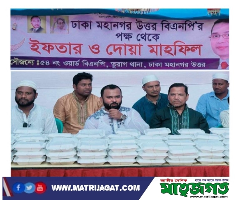 পলাশ তালুকদার - বিএনপি'র ভারপ্রাপ্ত চেয়ারম্যান তারেক রহমানের নির্দেশনায়, ঢাকা মহানগর উত্তর বিএনপি'র পক্ষ থেকে প্রতিদিনের ন্যায় ১৫,ই রমজান রবিবার তুরাগ থানার আওতাধীন ৫৪,নং ওয়ার্ডের রাজাবাড়ির চৌরাস্তা এলাকায় মুসল্লী, পথচারী ও অসহায় মানুষের মাঝে ইফতার বিতরণ করেন তুরাগ থানা বিএনপি'র প্রতিষ্ঠাতা সভাপতি বিশিষ্ট ব্যবসায়ী ও রাজনীতিবিদ আতিকুর রহমান আতিক,