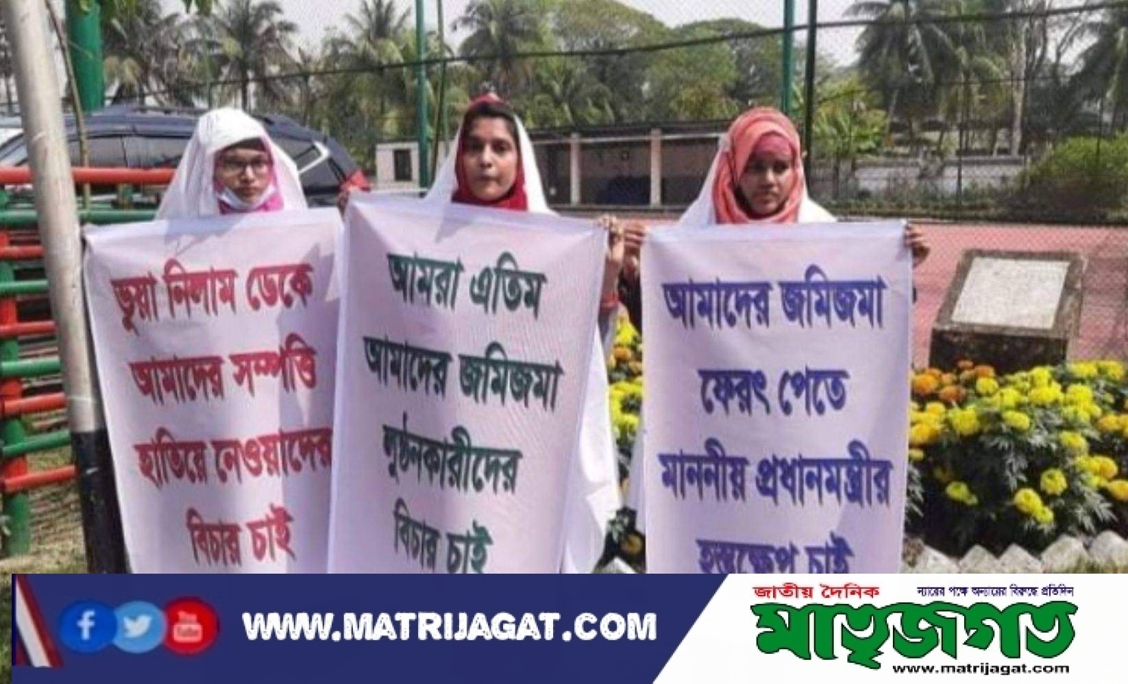 দাফনের কাপড় পড়ে বরগুনা তিন বোনের অনশন