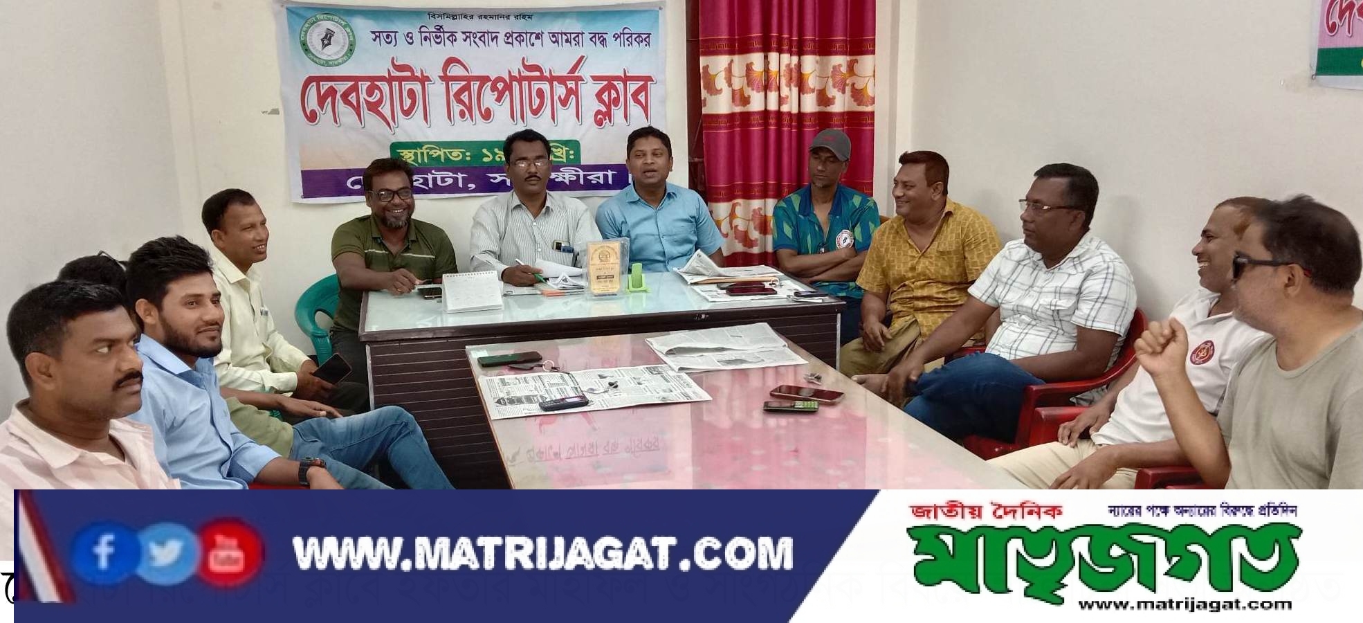দেবহাটা রিপোর্টার্স ক্লাবের আয়োজনে পবিত্র রমজানে ইফতার মাহফিল ও ক্লাবের সাংগঠনিক বিষয়ে আলোচনা সভা অনুষ্ঠিত হয়েছে। রবিবার ২ এপ্রিল, ২৩ ইং সকাল ১১টায় ক্লাবের নিজস্ব কার্য্যালয়ে উক্ত আলোচনা সভায় সভাপতিত্ব করেন দেবহাটা রিপোর্টার্স ক্লাবের সভাপতি মোঃ অহিদুজ্জামান। সভায় উপস্থিত ছিলেন ও বক্তব্য রাখেন মোহনা টিভির প্রতিনিধি সাংবাদিক আর.কে.বাপ্পা, দেবহাটা রিপোটার্স ক্লাবের সিনিয়র সহ-সভাপতি আকতার হোসেন ডাবলু, সহ-সভাপতি মেহেদি হাসান কাজল, সাধারন সম্পাদক রফিকুল ইসলাম, যুগ্ম সম্পাদক রুহুল আমিন মোড়ল, সাংবাদিক কে,এম রেজাউল করিম, সহকারী অধ্যাপক সাংবাদিক ইয়াছিন আলী, সহকারী অধ্যাপক সাংবাদিক জাফর ইকবাল, সাংবাদিক সাইফুল ইসলাম, সাংগঠনিক সম্পাদক আশরাফুল ইসলাম, কোষাধ্যক্ষ আবির হোসেন লিয়ন, দপ্তর সম্পাদক আব্দুল্লাহ আল মামুন, সাংবাদিক আমিরুল ইসলাম, সাংবাদিক শহিদুল ইসলাম, সদস্য আবু বকর সিদ্দিক, সাহিত্য ও প্রকাশনা সম্পাদক হীরন কুমার মন্ডলসহ সকল সাংবাদিকবৃন্দ। সভায় আগামী ১৮ রমজান, সোমবার ১০ এপ্রিল ইফতার মাহফিল করার সিদ্ধান্ত গ্রহন করা হয়। এছাড়া রিপোর্টার্স ক্লাবে সদস্য যাচাই বাছাই ও নতুন সদস্য অর্ন্তভূক্তির বিষয়ে সিদ্ধান্ত গ্রহন করা হয়।