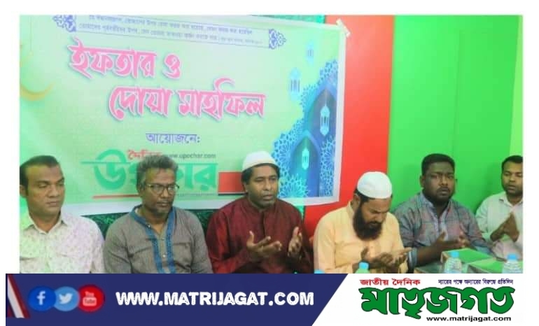 রাজশাহী থেকে প্রকাশিত দৈনিক উপচার পত্রিকার আয়োজনে ইফতার ও দোয়া মাহফিল অনুষ্ঠিত হয়েছে। আজ শনিবার নগরীর শিরোইল দোশর মন্ডলের মোড়ে অবস্থিত পত্রিকা কার্যালয়ে ইফতার ও দোয়া মাহফিল অনুষ্ঠিত হয়। অনুষ্ঠানে পত্রিকার যুগ্ম-সম্পাদক মো:নুরে ইসলাম মিলনের সভাপতিত্বে প্রধান অতিথি হিসেবে উপস্থিত ছিলেন পত্রিকার সম্পাদক ও প্রকাশক ড.মোহাম্মদ আবু ইউসুফ সেলিম দৈনিক মাতৃজগত পত্রিকার মফস্বল সম্পাদক মোঃ মোজাম্মেল হোসেন বাবু। এ সময় পত্রিকার বিভিন্ন জেলা ও উপজেলা প্রতিনিধিরা উপস্থিত ছিলেন। অনুষ্ঠানের শুরুতেই পবিত্র কোরআন থেকে তেলাওয়াত করেন দৈনিক উপচার পত্রিকার স্টাফ রিপোর্টার ফারুক আহম্মেদ। আলোচনা শেষে দোয়াও পরিচালনা করেন তিনি। অনুষ্ঠানটি সঞ্চালনা করেন পত্রিকার স্টাফ রিপোর্টার ফাইসাল আজম অপু। ইফতারের পূর্ব মূহুর্তে পত্রিকার সকল প্রতিনিধি, সাংবাদিক, কর্মকর্তা-কর্মচারী ও কলাকুশলী এবং দেশ ও জাতির শান্তির জন্য বিশেষ দোয়া করা হয়। অনুষ্ঠান শেষে পত্রিকার সম্পাদক ও প্রকাশক ইফতার মাহফিলে উপস্থিত থাকা সকলকে দীর্ঘায়ু ও শুভ কামনা জানান।