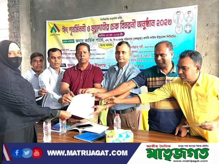 ধামইরহাটে ঈদ পুনর্মিলনী ও মৃত্যু দাবির চেক বিতরণ
