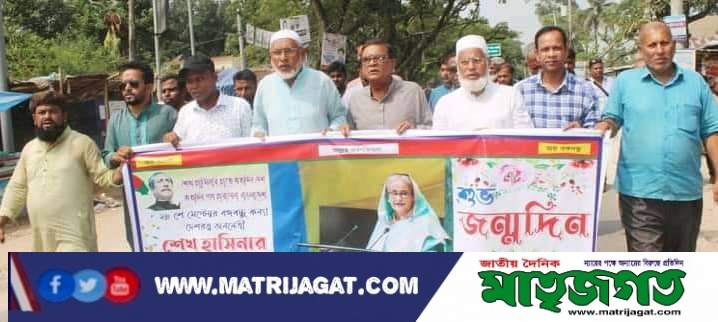মাননীয় প্রধানমন্ত্রী ও আওয়ামী লীগের সভাপতি শেখ হাসিনার ৭৬ তম জন্ম বার্ষিকী বিভিন্ন কর্মসূচীর মধ্য দিয়ে পালিত হয়েছে। ভোর ৭.৩০ মিনিটে দলীয় অফিসে জাতীয় ও দলীয় পতাকা উত্তোলন কেক কাটা ও র্যালী এবং আলোচনা সভা সে-ই সাথে বৃক্ষের চারা বিতরণ কর্মসূচি পালন করা হয়।