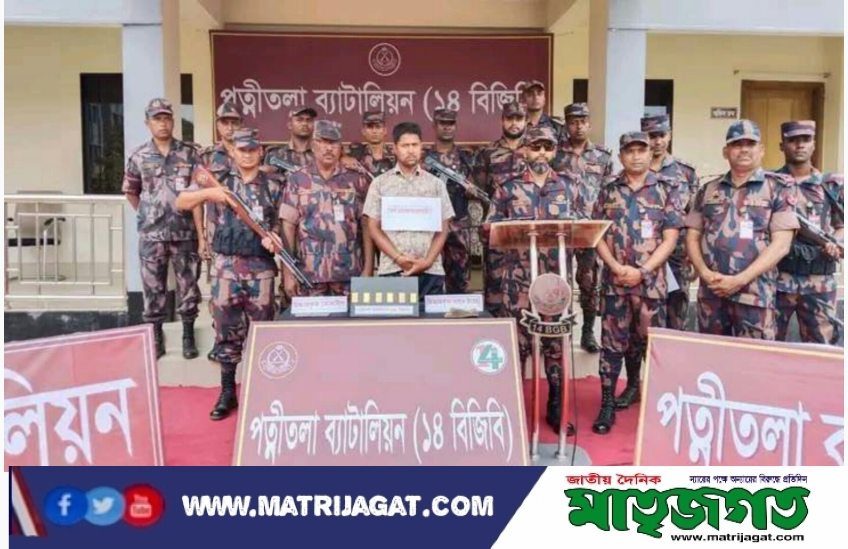 মোঃ শহিদুল ইসলাম নিজস্ব প্রতিবেদকঃ-নওগাঁর ধামইরহাট সীমান্তে ভারতে পাচারকালে ৬টি স্বর্ণেন বারসহ কিবরিয়া (৩৮) নামে এক চোরাকারবারীকে আটক করেছে ১৪ বিজিবি। শুক্রবার (২৮ এপ্রিল) দুপুরে পত্নীতলা ১৪বিজিবি ব্যাটালিয়ন ক্যাম্পে এক সংবাদ সম্মেলনে এসব তথ্য নিশ্চিত করেন নওগাঁ ১৪বিজিবি অধিনায়ক লে. কর্নেল হামিদ উদ্দিন। আটক কিবরিয়া ধামইরহাট উপজেলার চকবদল গ্রামের মো: আলাউদ্দিনের ছেলে।