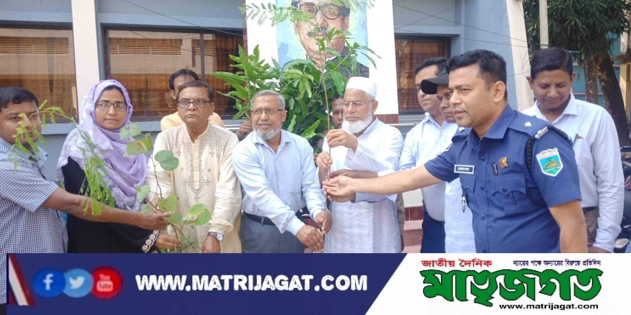 বকুল,ঝাউসহ বিভিন্ন প্রজাতির গাছ বিতরণ করা হয়।