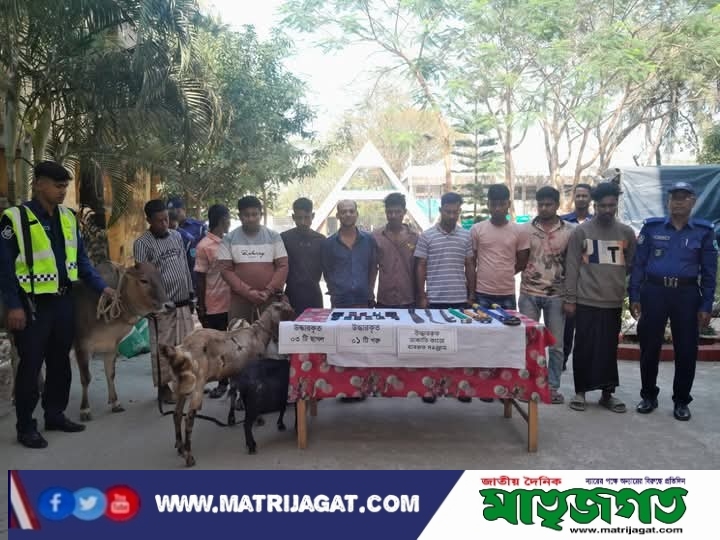 গ্রেফতারকৃতরা হলেন—১. মোশারফ হোসেন ওরফে মুসা (২৯), মানিকগঞ্জ২. কামরুল কাজী (২৮), ফরিদপুর৩. হাবিবুর রহমান (৩২), মানিকগঞ্জ৪. মোঃ সাইফুল ইসলাম (৩৭), মানিকগঞ্জ৫. মোঃ মোমিন (৩২), ব্রাহ্মণবাড়ীয়া৬. রাজীব মিয়া (২৫), ব্রাহ্মণবাড়ীয়া৭. ইসমাইল হোসেন (২৮), মানিকগঞ্জ৮. সুজন ব্যাপারী (৩৫), নবাবগঞ্জ, ঢাকা৯. মোঃ রবিউল ঢালী (২৭), মানিকগঞ্জ১০. মোঃ তোতা ঢালী (৬২), মানিকগঞ্জ ডাকাতির কাজে ব্যবহৃত হলুদ-নীল রংয়ের ট্রাক বিভিন্ন ধরনের দেশীয় অস্ত্র, ভল্ট কাটার সরঞ্জাম ৩টি ডাকাতি করা ছাগল (মূল্য ৪০,০০০/- টাকা) ১টি ডাকাতি করা সাদা রংয়ের গরু (মূল্য ১,২০,০০০/- টাকা) প্রাথমিক জিজ্ঞাসাবাদে গ্রেফতারকৃতরা স্বীকার করেছে, তারা নবাবগঞ্জ, দোহার, কেরানীগঞ্জ, মানিকগঞ্জ, ফরিদপুর ও আশপাশের এলাকায় সংঘবদ্ধভাবে ডাকাতি করে আসছিল। গ্রেফতারকৃতদের বিরুদ্ধে নবাবগঞ্জ থানায় মামলা (নং ০৫, তারিখ ০৪/০৩/২০২৫) দায়ের করা হয়েছে।