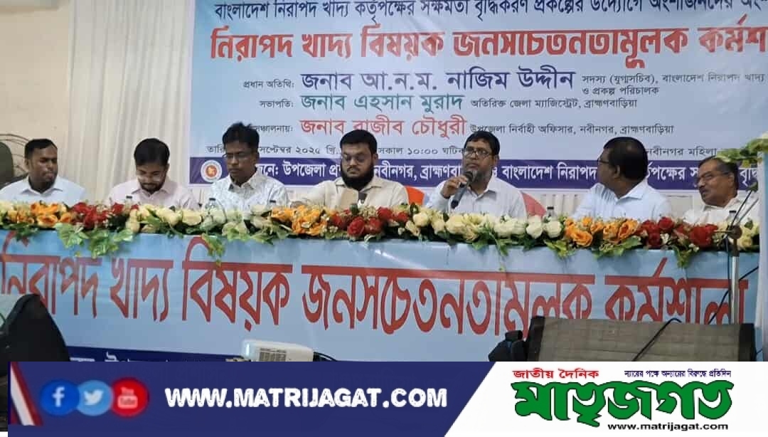 বাংলাদেশ নিরাপদ খাদ্য কর্তৃপক্ষের সক্ষমতা বৃদ্ধিকরণ প্রকল্পের উদ্যোগে অংশীজনদের অংশগ্রহণে গতকাল শনিবার (১৩/৯) সকালে ব্রাহ্মণবাড়িয়ার নবীনগর মহিলা ডিগ্রি কলেজ অডিটরিয়ামে দিনব্যাপী জনসচেতনতামূলক কর্মশালা অনুষ্ঠিত হয়।