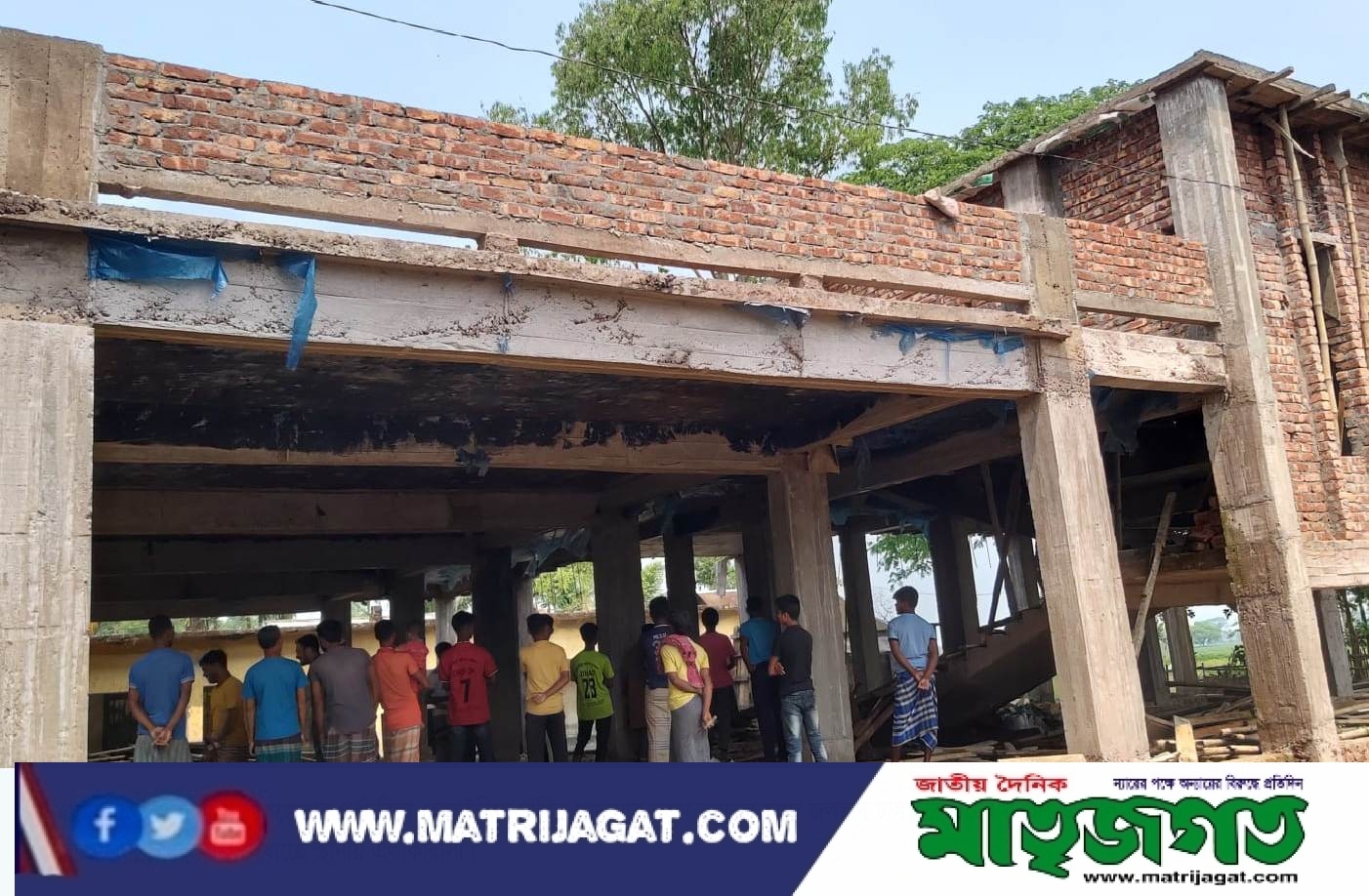 নান্দাইলে ইটের রাবিশ দিয়ে মাদ্রাসার ছাদ ঢালাই ॥ [ সামাজিক যোগাযোগ মাধ্যমে অনিয়মের ভিডিও ভাইরাল ]