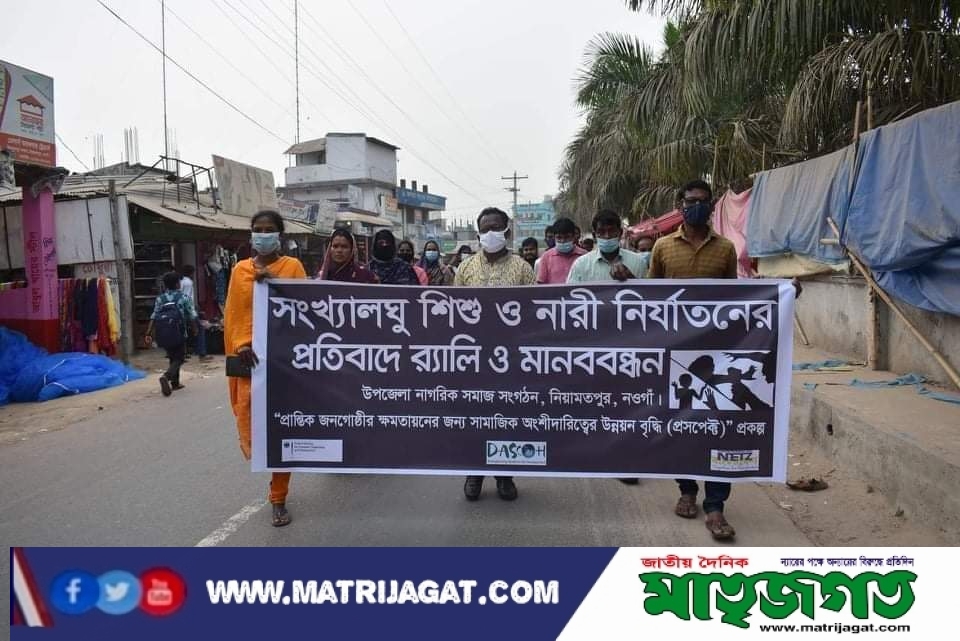 নিয়ামতপুরে শিশু ও নারী নির্যাতনের প্রতিবাদে র‍্যালী ও মানববন্ধন অনুষ্ঠিত।