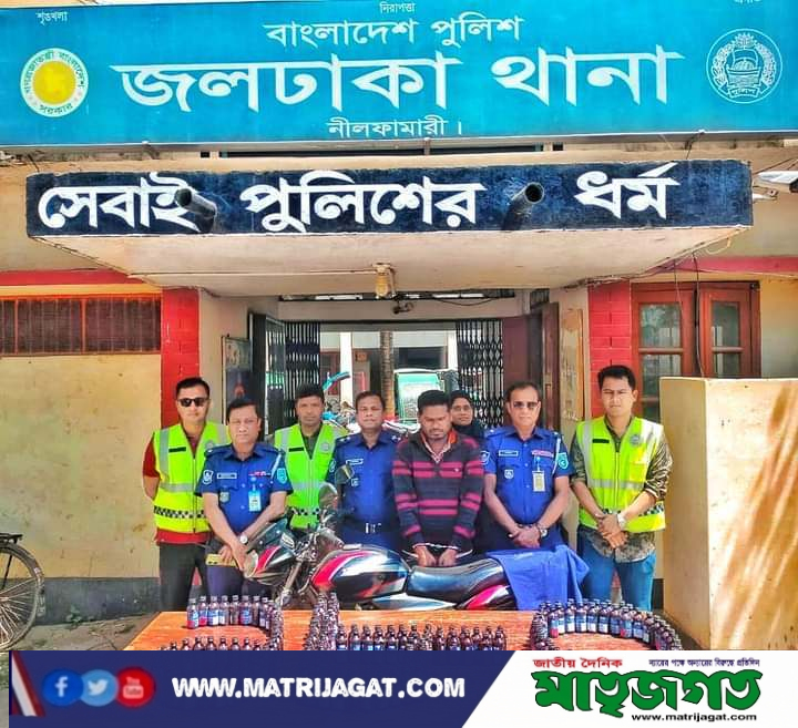 এস.এম. আহসান হাবীব বাবু স্টাফ রিপোর্টার, নীলফামারী: নীলফামারী জেলার সুযোগ্য পুলিশ সুপার জনাব মোঃ গোলাম সবুর পিপিএম-সেবা মহোদয়ের সার্বিক দিক-নির্দেশনায় নীলফামারী জেলাকে মাদক মুক্ত করার লক্ষ্যে জলঢাকা থানার অফিসার ইনচার্জ জনাব মোঃ মুক্তারুল আলম এর নেতৃত্বে জলঢাকা থানা পুলিশের একটি চৌকস আভিযানিক টিম গোপন তথ্যের ভিত্তিতে বিশেষ পুলিশি চেকপোস্ট বসিয়ে জলঢাকা থানাধীন দুন্দীবাড়ি হতে চাওড়াডাঙ্গী গামী পাকা রাস্তায় চকচকার দোলা ছোট সাইপোন নামক স্থানে পানি উন্নয়ন বোর্ডের ক্যানেলের পাকা রাস্তার উপর হতে তারিখ ০১/০৪/২৪ সময় রাত্রি ১০:০৫ ঘটিকার সময় আসামী মোঃ মইনুল হক (৩৫), পিতা- মৃত ফয়েজ উদ্দিন, গ্রাম-উত্তর সোনাখুলি মিলন পাড়া থানা - ডিমলা জেলা- নীলফামারীকে বিশেষ কায়দায় নেভি ব্লু রঙের কাপড় দ্বারা তৈরি বস্তার ন্যায় ব্যাগ থেকে ১৮০ (একশত আশি) বোতল ফেনসিডিল ও মাদক পরিবহনের কাজে ব্যবহৃত একটি ডিসকভার ১২৫ সিসি মোটরসাইকেল আটক করা হয়। যার মূল্য অনুমান ২৭০,০০০/= (দুইলক্ষ সত্তর হাজার) টাকা।