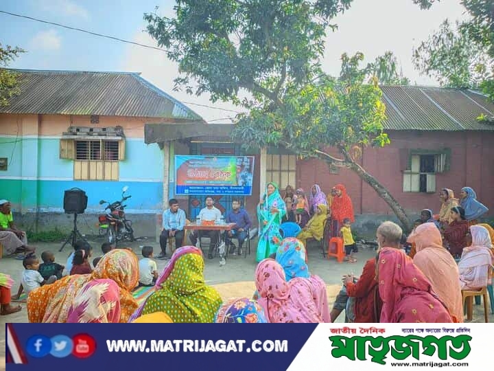 জেলা তথ্য অফিস, নীলফামারী কতৃর্ক আয়োজিত প্রান্তিক পর্যায়ে গণযোগাযোগ অধিদপ্তরের নিয়মিত কার্যক্রমের আওতায় ২০২৫-২০২৬ অর্থবছরের ( অক্টোবর -ডিসেম্বর) প্রান্তিকের নিয়মিত উঠান বৈঠক অনুষ্ঠিত হয়েছে। নীলফামারী সৈয়দপুর উপজেলার কাশিরাম বেলপুকুর ইউনিয়নের ডাঙ্গারপাড় গ্রামে মোসাম্মৎ শাহানাজ পারভীন (৪,৫,৬ নং ইউপি মহিলা সদস্য) এর উঠানে এ "উঠান বৈঠকটি" অনুষ্ঠিত হয়েছে। এই বৈঠকে উপস্থিত ছিলেন জেলা তথ্য অফিসার মোঃ বায়েজীদ হোসেন, ইউনিয়ন পরিষদের সদস্যবৃন্দ এবং এলাকার বিভিন্ন বয়সের নারী ও কিশোর কিশোর। জেলা তথ্য অফিসার স্বাস্থ্য, শিক্ষা, বাল্য বিবাহ, শিশু ও কিশোরদের শারিরীক ও মানসিক স্বাস্থ্য সম্পর্কে গুরুত্বপূর্ণ মতামত তুলে ধরেন। নৈতিকতা ও মূল্যবোধের মাধ্যমে সমাজে মাদকাসক্তির বিরুদ্ধে সামাজিক আন্দোলন গড়ে তুলতে মায়েদের ভূমিকা যে অপরিসীম সে বিষয়টি ও আলোকপাত করেন। এছাড়াও বর্তমানে মোবাইল আসক্তি থেকে শিশুদের দুরে রাখার প্রয়োজনীয়তা উল্লেখ করেন। ডেঙ্গু ও শীতকালীন রোগ সম্পর্কে সকলের সচেতনতার প্রয়োজনীয়তার বিষয়টি উঠান বৈঠক এ উঠে আসে। টাইফয়েড টিকাদান এর প্রয়োজনীয়তা ও টিকা বিষয়ে গুজব, অপতথ্য প্রতিরোধে সকলের সচেতনতার গুরুত্ব উঠান বৈঠকে তুলে ধরা হয়।