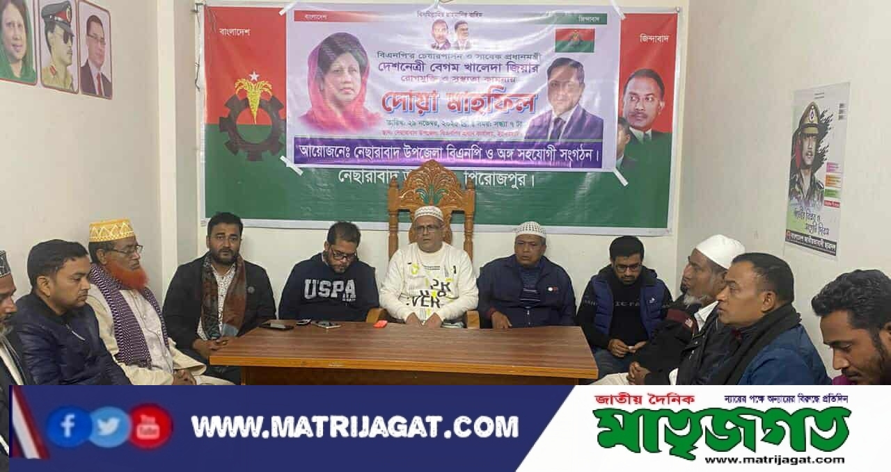 পিরোজপুরে, নেছারাবাদ (স্বরূপকাঠি) উপজেলায় বিএনপি চেয়ারপার্সন আপোষহীন নেত্রী বেগম খালেদা জিয়ার রোগমুক্তি ও সুস্থতা কামনায় দোয়া মাহফিলের আয়োজন করে নেছারাবাদ উপজেলা বিএনপি অঙ্গ ও সহযোগী সংগঠন। ২৯ নভেম্বর শনিবার মাগরিব বাদ ইন্দেরহাট অটোষ্ট্যান্ড সংলগ্ন বিএনপি কার্যালয়ে উক্ত দোয়া মাহফিল অনুষ্ঠিত হয়।