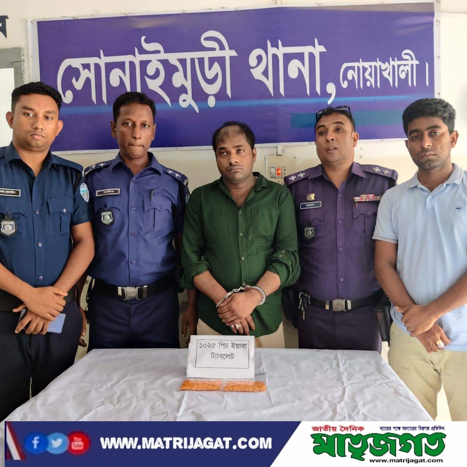নোয়াখালীতে অবৈধ মাদকদ্রব্য ইয়াবা ট্যাবলেট ১০২৫ পিস সহ ১ জন গ্রেফতার