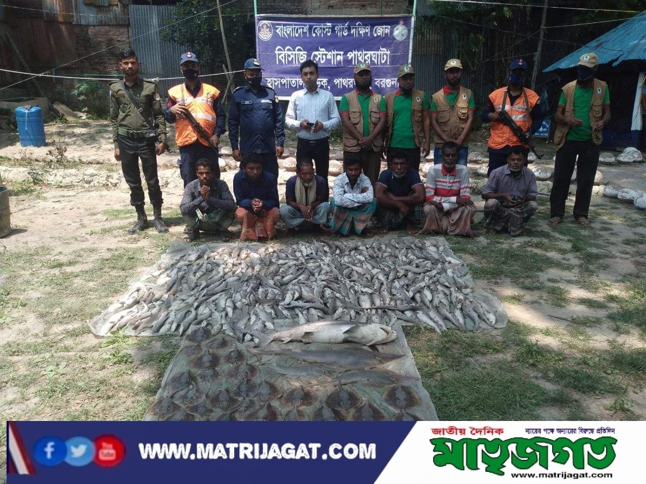পাথরঘাটা ৪ মন হাঙ্গর ও শাপলা পাতা জব্দ ৯ জনকে জরিমানা