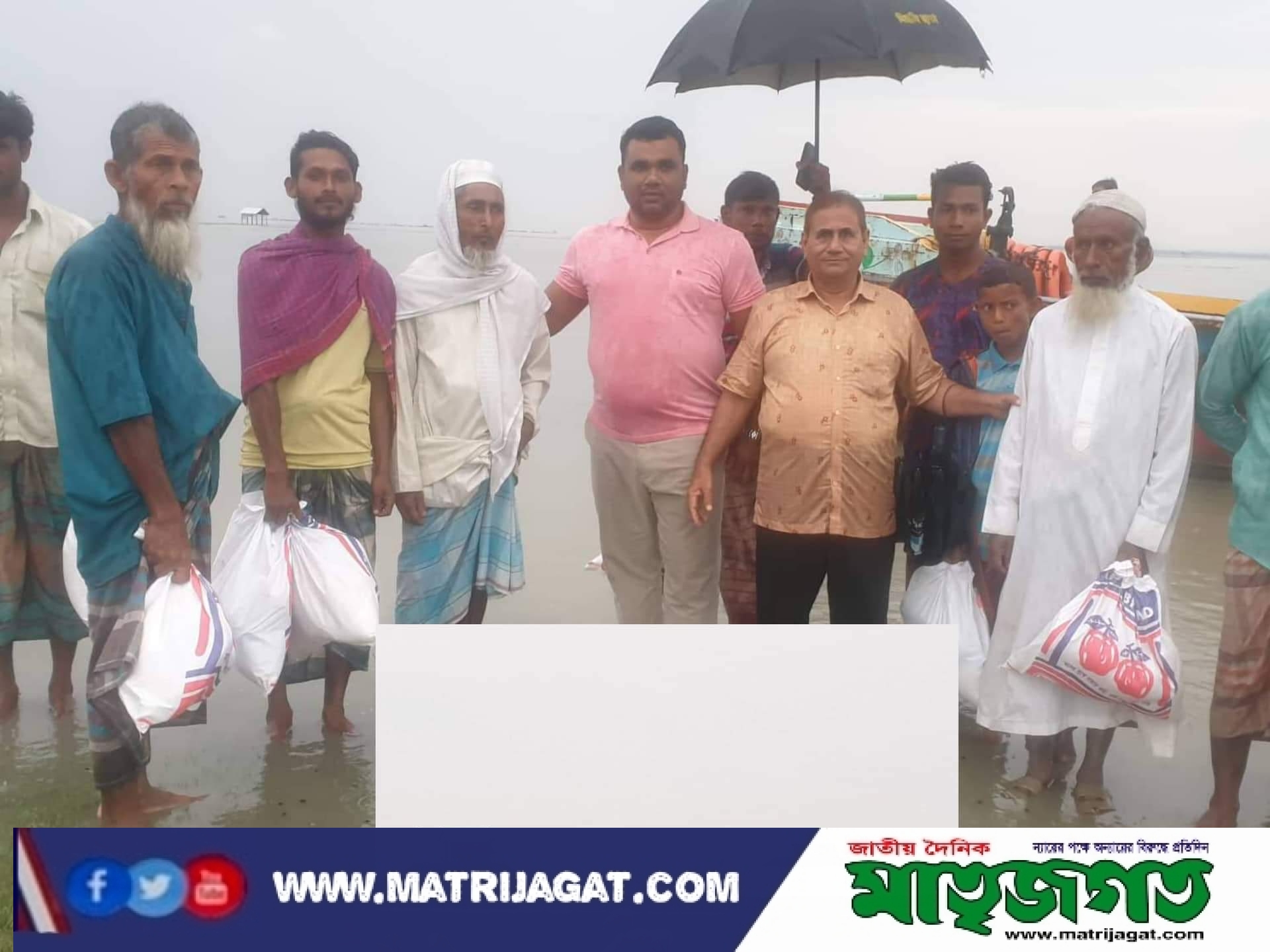 পানি বন্দি মানুষের শুকনাে খাবার বিতরণ