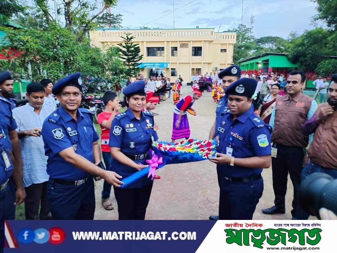 বিকেল ৫টায় থানায় পুলিশ সুপার পৌঁছামাত্রই এ এসপি সাগর দিপা বিশ্বাস ও থানা অফিসার ইনচার্জ টিপু সুলতান ফুলেল শুভেচ্ছা জানিয়ে উপজেলার ক্ষুদ্র নৃগোষ্ঠীর শিল্পীদের নৃত্যের মাধ্যমে উপজেলার সুধীজনদের নিয়ে বরণ করেন।