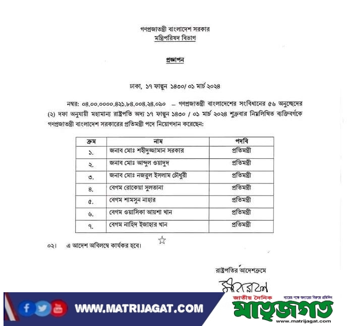 প্রিন্ট এর তারিখঃ নভেম্বর ১১, ২০২৫, ৬:৪৭ পি.এম || প্রকাশের তারিখঃ মার্চ ১, ২০২৪, ৫:১৯ অপরাহ্ণ