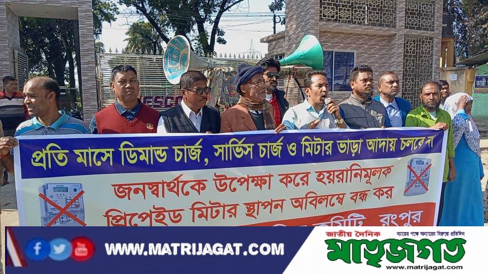 প্রিপেইড মিটার স্থাপন বন্ধের দাবিতে রংপুর মহানগর নাগরিক কমিটির মানববন্ধন