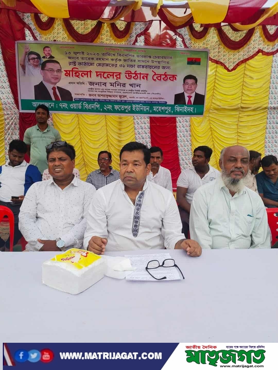 ঝিনাইদহের জেলা মহেশপুর উপজেলার ফতেপুর ইউনিয়নে বিএনপির ভারপ্রাপ্ত চেয়ারম্যান জনাব তারেক রহমান প্রদত্ত ৩১ দফা কর্মসূচি বাস্তবায়নের লক্ষ্যে আজ শনিবার মহিলা দলের উদ্যোগে এক উঠান বৈঠক অনুষ্ঠিত হয়েছে।