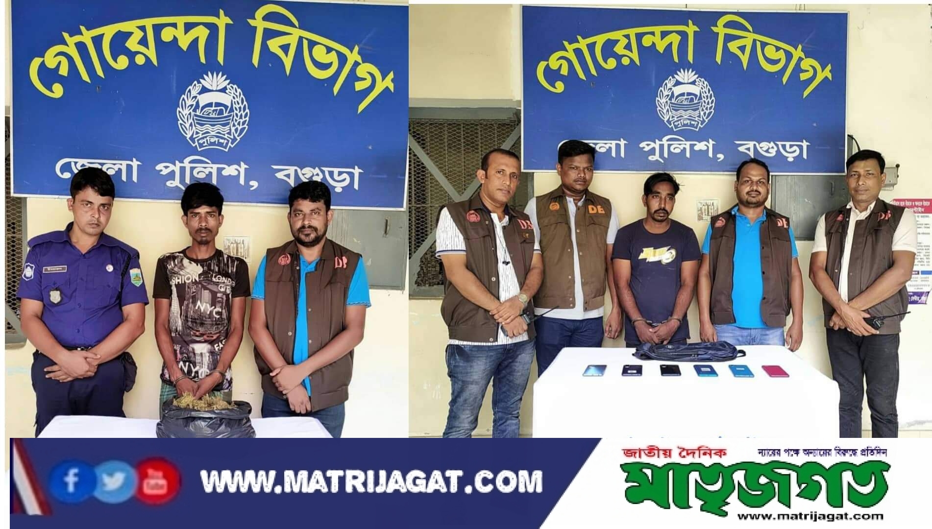 বগুড়া জেলার সুযোগ্য পুলিশ সুপার সুদীপ কুমার চক্রবর্ত্তী বিপিএম সেবা মহোদয়ের সার্বিক দিক নির্দেশনায় ডিবি, বগুড়ার অফিসার ইনচার্জ (ওসি) মোঃ সাইহান ওলিউল্লাহ এর নেতৃত্বে টিম ডিবি বগুড়ার পৃথক পৃথক অভিযানে ০৬(ছয়) টি চোরাই মোবাইল ও ০১(এক) কেজি গাঁজাসহ ০২ জন আসামীকে গ্রেফতার করেছে।