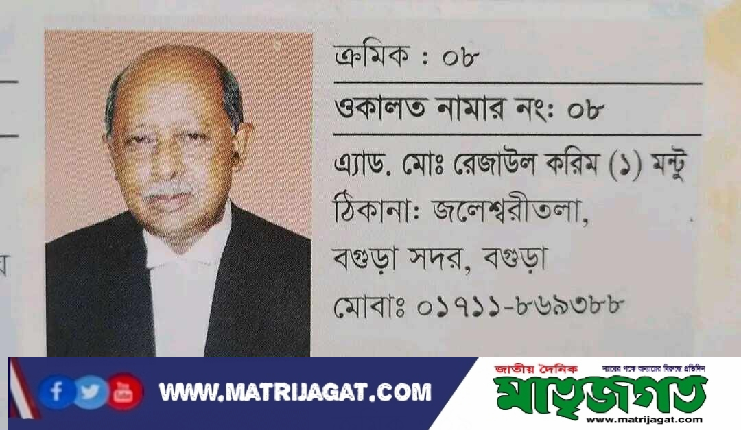নিজস্ব প্রতিবেদকঃ- বগুড়া পৌরসভার সাবেক মেয়র সিনিয়র আইনজীবী বীর মুক্তিযোদ্ধা রেজাউল করিম মন্টু (৭৫) আর নেই।