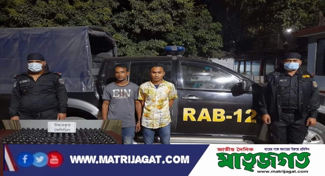 গ্রেপ্তারকৃত মাদক ব্যবসায়ী ঠাকুরগাঁও জেলার সদর থানার ছিটচিলারং এলাকার মৃত আজিজুর রহমান এর ছেলে মোঃ সোহবার হোসেন (২৯) ও অপর জন কুমিল্লা জেলার চৌদ্দগ্রাম, কুমাড়ডোগা এলাকার শাহীন মিয়ার ছেলে মোঃ সেলিম (২৮) কে ১৪৫ বোতল ফেন্সিডিল, মোবাইল এবং নগদ টাকাসহ গ্রেফতার করে।
