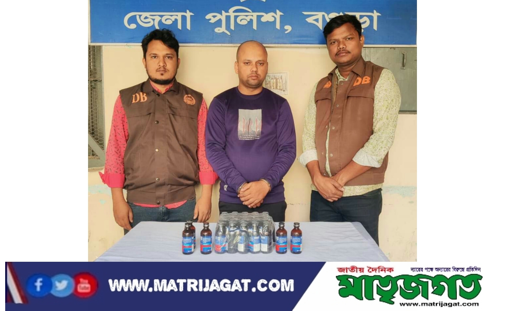 বগুড়া ডিবির একটি টিম গত মঙ্গলবার (২২ নভেম্বর) সন্ধ্যা ০৭.৩০ ঘটিকার সময় বগুড়া সদর থানাধীন কাজীবাড়ী মোড় হইতে অনুমান ১০০ গজ পূর্বে নুরজাহান মহল নামক বাসার গেটের সামনে চন্দন বাইশা রোডের উপর হইতে ৩০ (ত্রিশ) বোতল ফেন্সিডিলসহ আসামী ১। মোঃ আহসানুল কবীর (৩০) পিতা মোঃ মোফাজ্জল হোসেন, সাং-গোপীনাথপুর, থানা শিবগঞ্জ জেলা বগুড়া এপি/কাজীবাড়ী মোড় (মোঃ গোলাম রব্বানী সচীব (৫০), এর বাসার ৩য় তলার উত্তর পার্শ্বের ভাড়াটিয়া) থানা ও জেলা বগুড়াকে গ্রেফতার করে।