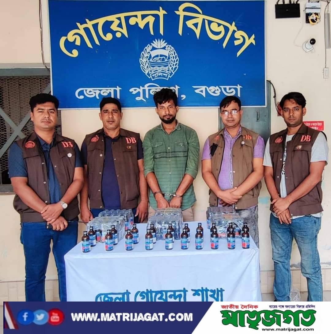 বগুড়া ডিবির একটি টিম আজ (২১ আগস্ট) রবিবার বিকেল ০৪.০৫ ঘটিকার সময় বগুড়া সদর থানাধীন গোকুল সাকিনস্থ রংপুর-বগুড়া মহাসড়কের রংধনু আইডিয়াল স্কুল এর সামনে চেকপোষ্ট পরিচালনা করা কালে ১৭০(একশত সত্তর) বোতল ফেন্সিডিলসহ আসামী ১। মোঃ ইমরান(৩৮), পিতা-মোঃ ইসতিয়াক আহম্মদ, সাং-আলমনগর (বাসা নং-১৭৯, রোড নং-৩, মহাদেবপুর) , থানা-রংপুর কোতয়ালী (সদর), জেলা–রংপুরকে গ্রেফতার করেছে।