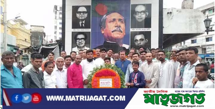 বঙ্গবন্ধু সহ জাতীয় চার নেতার প্রতিকৃতিতে পুষ্পস্তবক অর্পণ করেন মতিহার থানা শ্রমিক লীগ