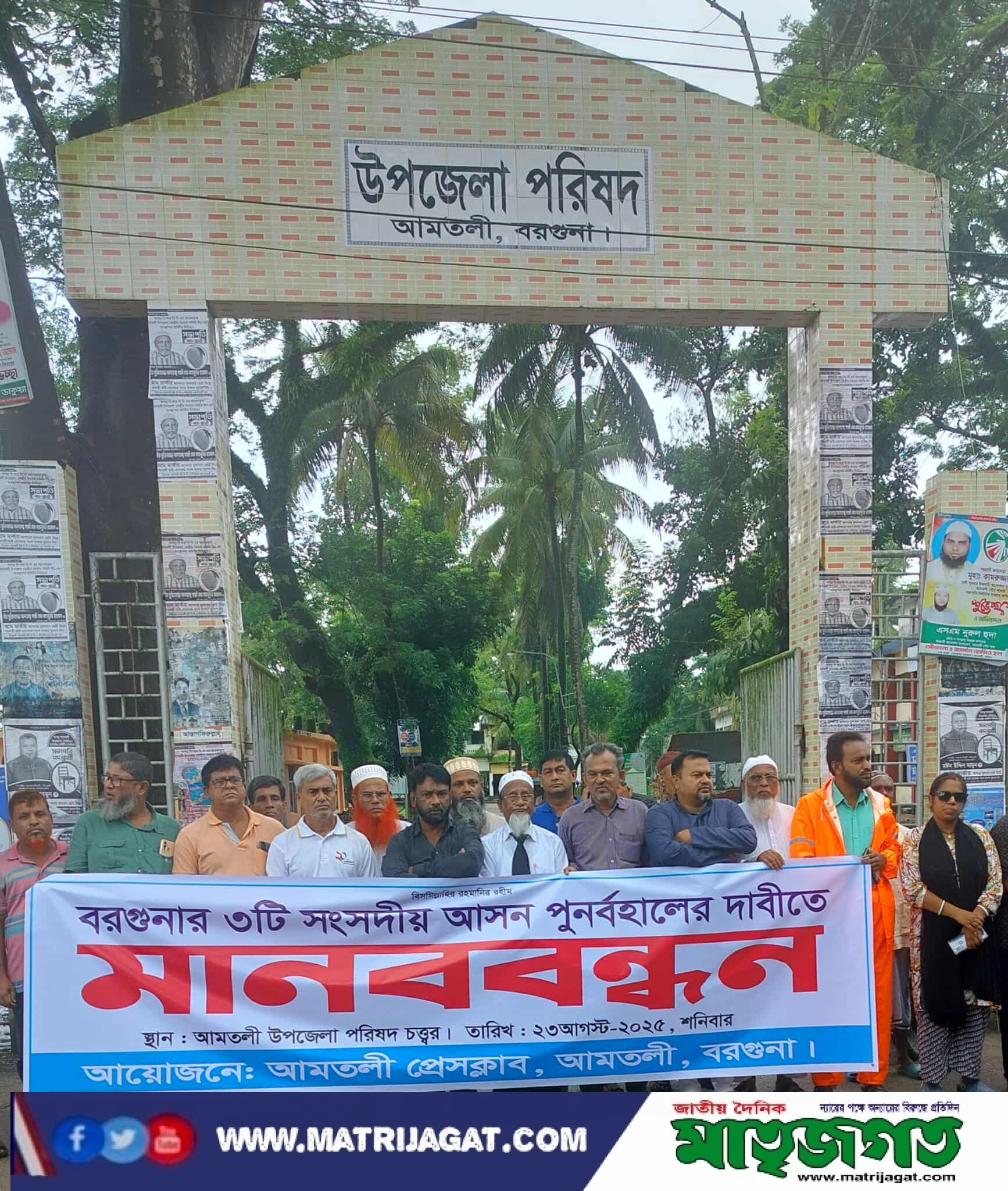 বরগুনার তিনটি আসন বহালের দাবিতে আমতলীতে মানববন্ধন