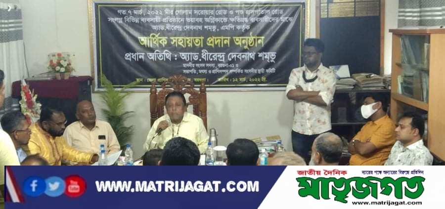 আমতলী (বরগুনা) প্রতিনিধিঃ গত ৭ই মার্চ ২০২২ রাত ১০:০০ টা বরগুনায় ভয়াবহ অগ্নিকাণ্ডে যেসকল ব্যবসায়ীরা ক্ষতিগ্রস্ত হয়েছে তাদেরকে আর্থিক সহযোগিতা করলেন বরগুনার মাননীয় সংসদ সদস্য অ্যাডভোকেট ধীরেন্দ্র দেবনাথ শম্ভু। জেলা প্রাণিসম্পদ অফিস সংলগ্ন গোলাম সরোয়ার সড়কে ক্ষতিগ্রস্ত ১৭জন ব্যবসায়ীদের মধ্যে আর্থিক সহযোগিতা প্রদান করেন।