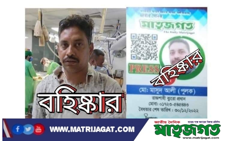 মোঃ মাসুদ আলী পুলক কে জাতীয় দৈনিক মাতৃজগত পত্রিকা, থেকে বহিষ্কার করা হয়েছে।